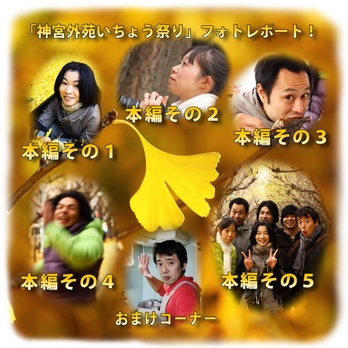「手術(オペ)ニモマケズ」アンケートクイズに当選したのは、 光野郁江 さん でした!おめでとうございます! というわけで、 2010年12月7日(火)の午後、 光野さんと一緒に、 「神宮外苑いちょう祭り」にいってきました! その日の写真レポートを掲載しましたので、 お楽しみください。 6つのコーナーがあります。 クリックしてみてね!