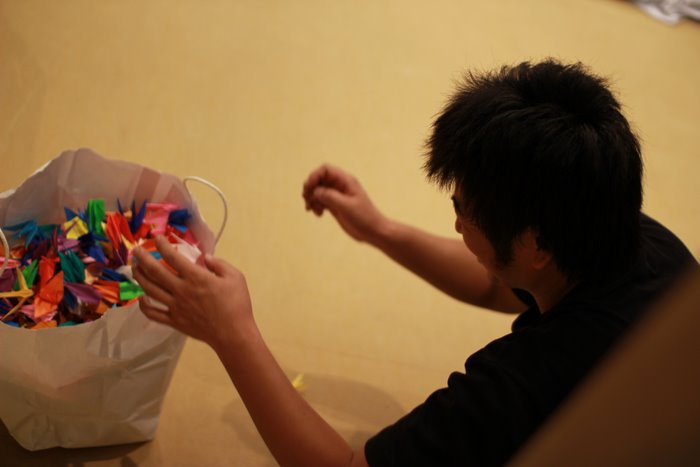 こぼれた折鶴はそのたび、拾ってもとに戻す。