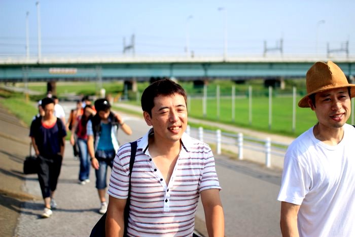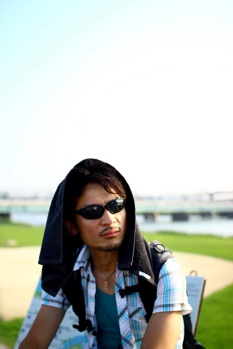 笑顔の手塚。普通に笑っているが、この時点でかなり暑かった。
