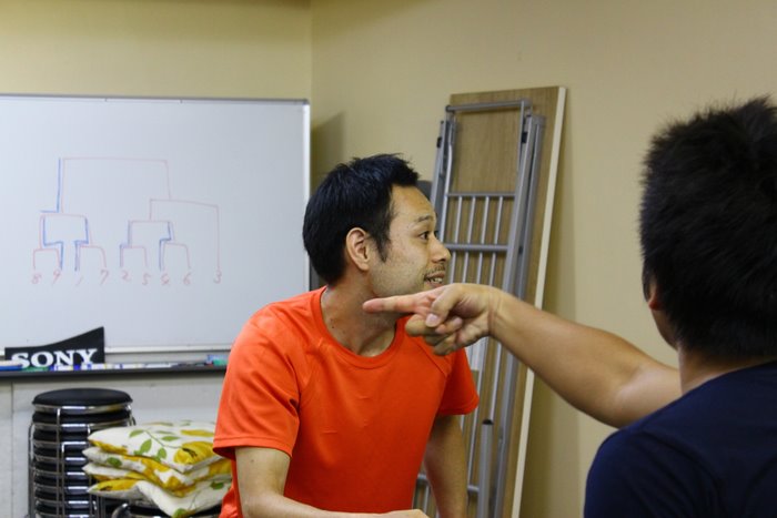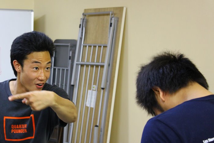 台本稽古の前に「ポイホイ」というゲームでウォーミングアップです。