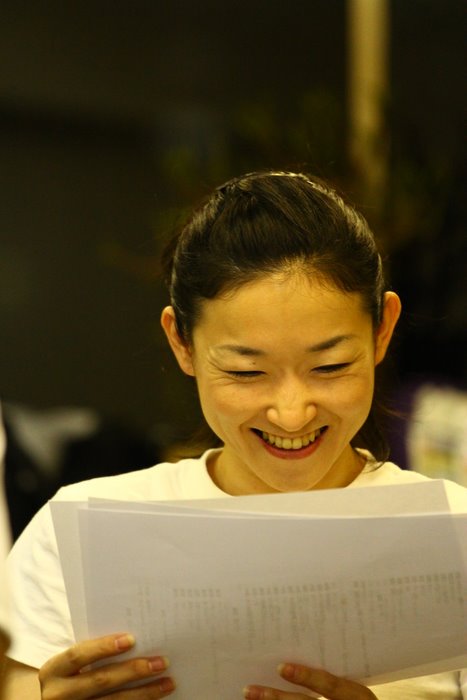 彼女は、台本を読みながらよく笑います。