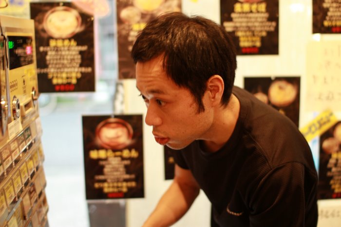 やっと食券を購入し、らーめんを待つ田丸。