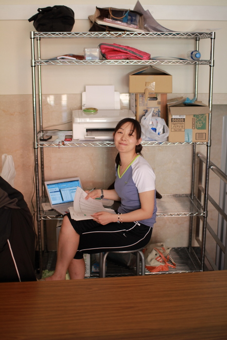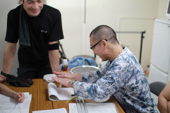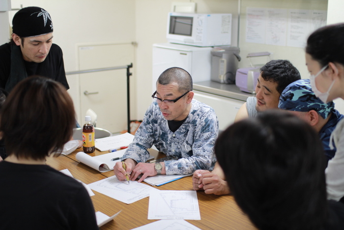作戦会議に備える舞台監督・早坂さん。
