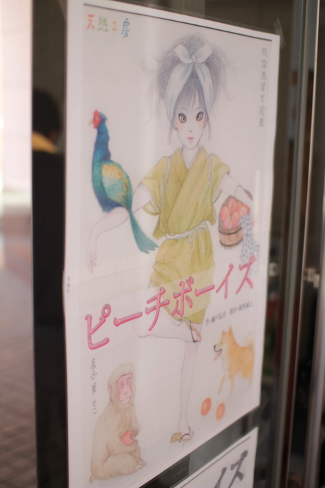 劇場入り口に貼られた、ピーチボーイズの巨大ポスター。