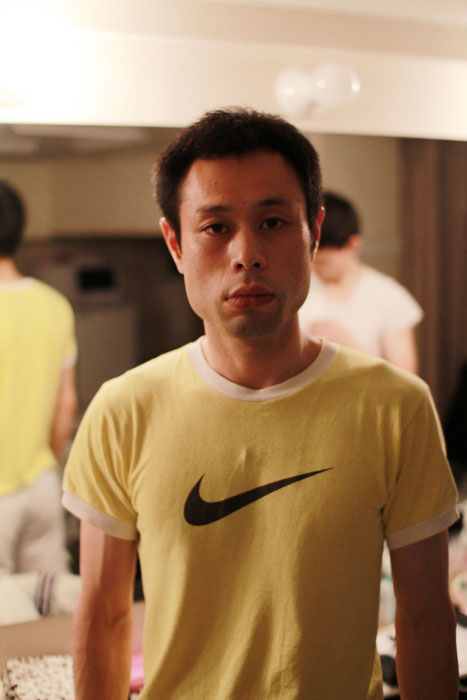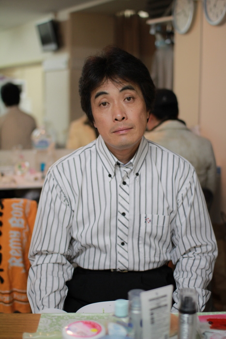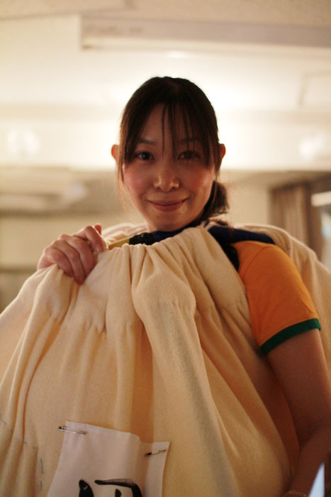 公演に備えて、エネルギーを節約している齊藤みつじ。