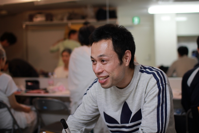 公演前、余裕の塚本。