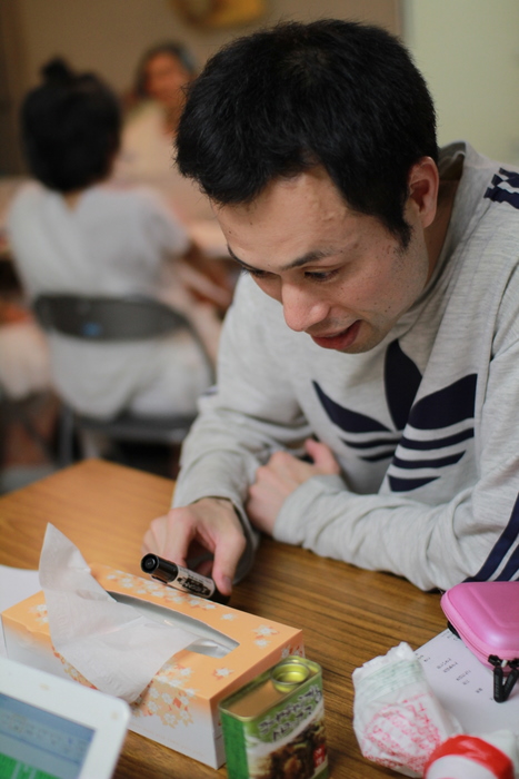 大事な小道具の準備をする田丸。