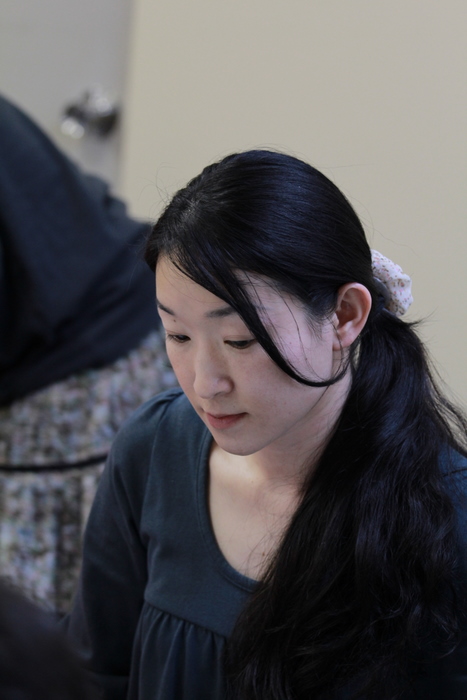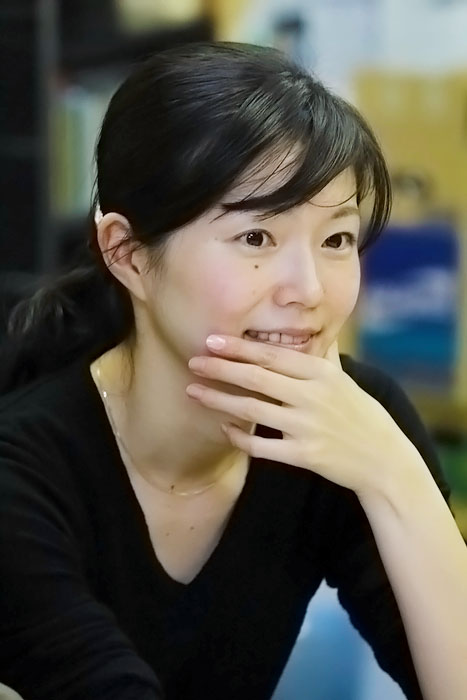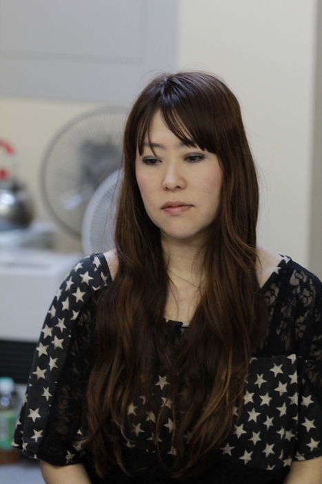 読み合わせ中の、中倉香織。