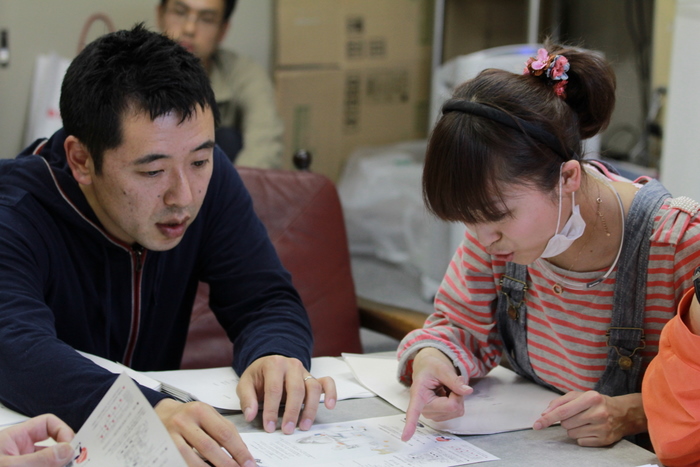 平川がチラシを見せて説明している。