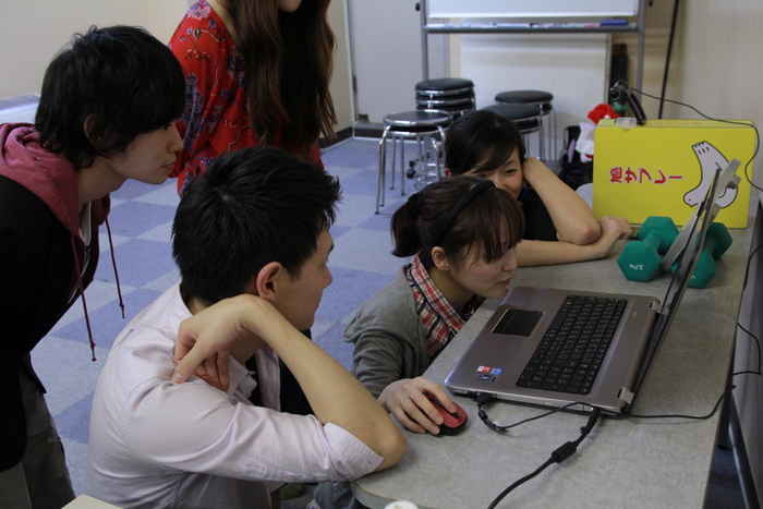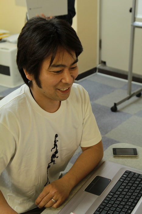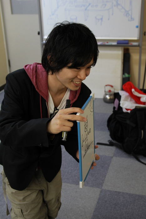 松田が、金田朋子ちゃんの絵を見て、笑っている。