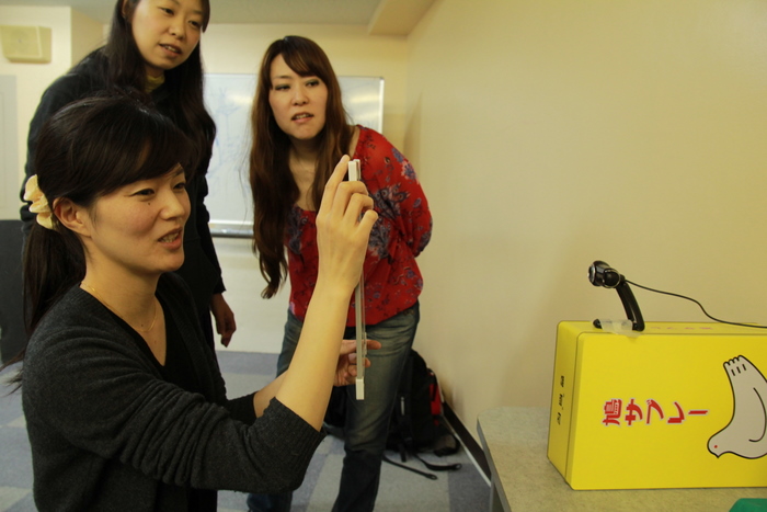 生放送用のカメラは、鳩サブレーの缶にくっつけて固定している。