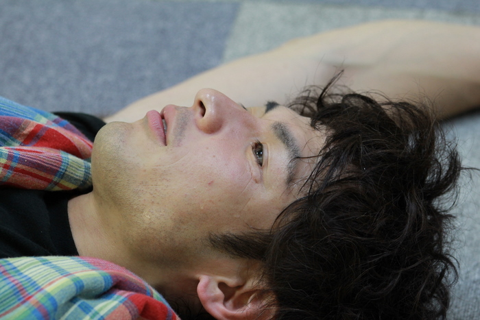ウォーミングアップのダンスで疲れはててしまった平川。