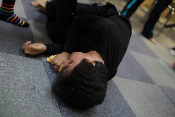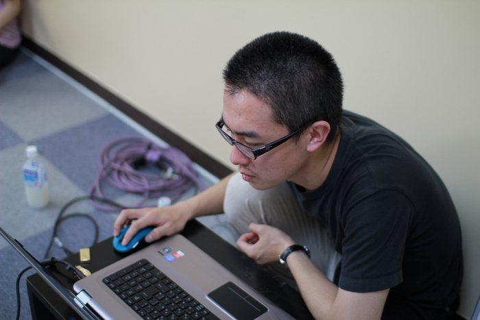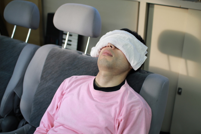 カメラを向けると、とりあえずなにか、表情をつくる。