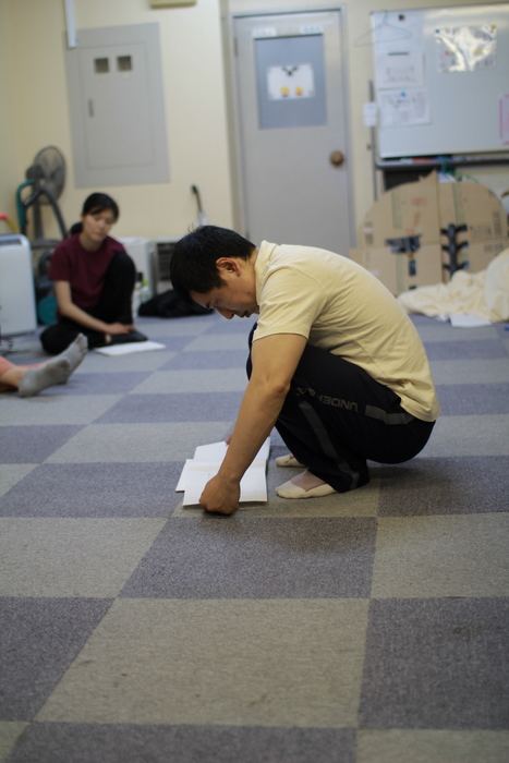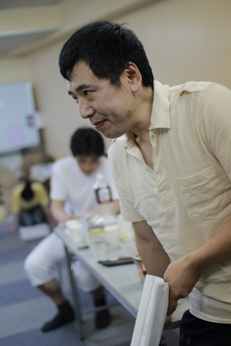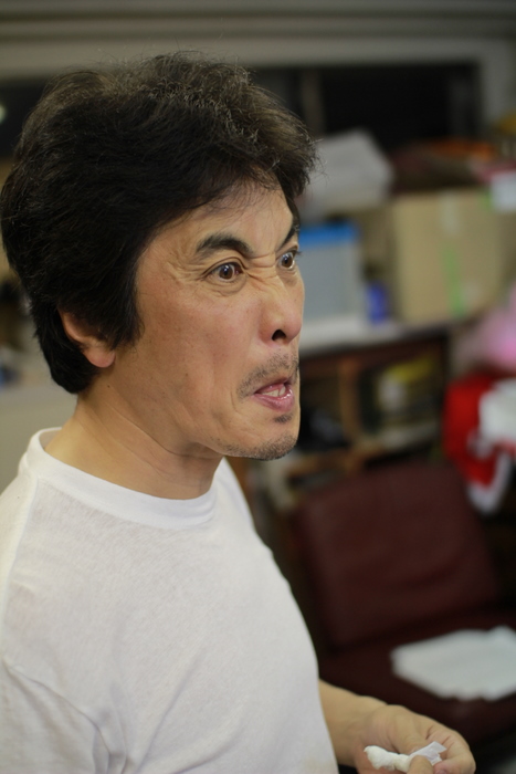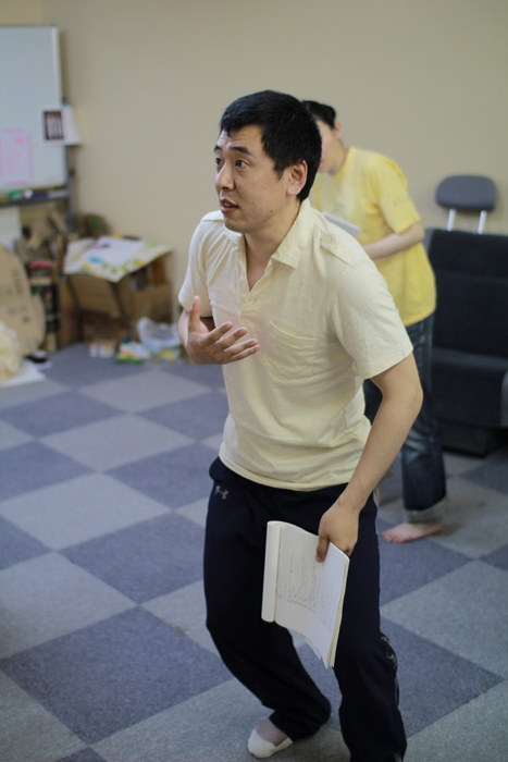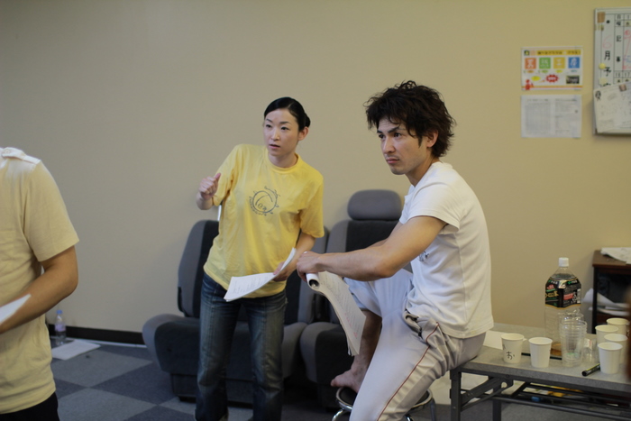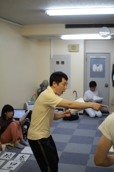 座長役の松田が、劇団員たちに演技のお手本をみせるシーン。