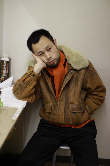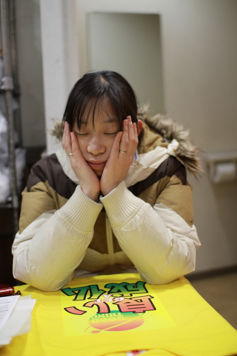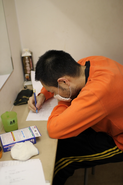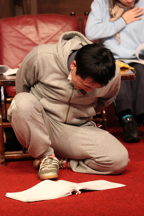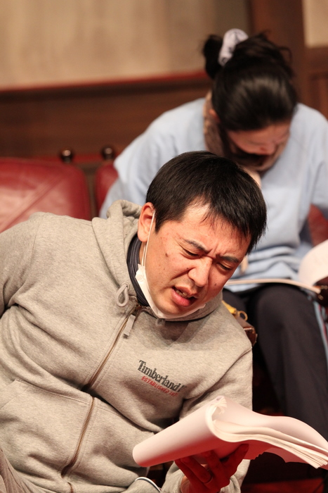 台詞のチェックをする田丸。