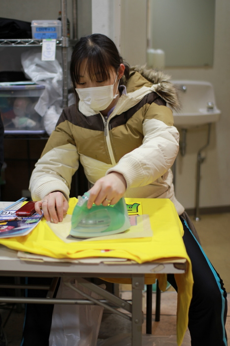 アイロンがけをする手塚。