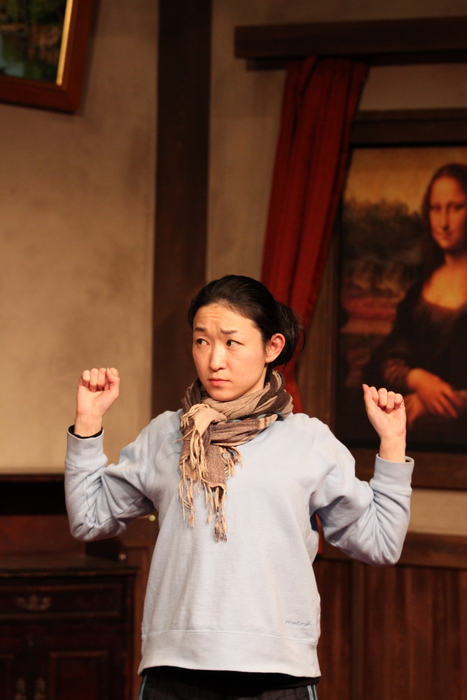 あぐらをかくモナリザ役の元田。