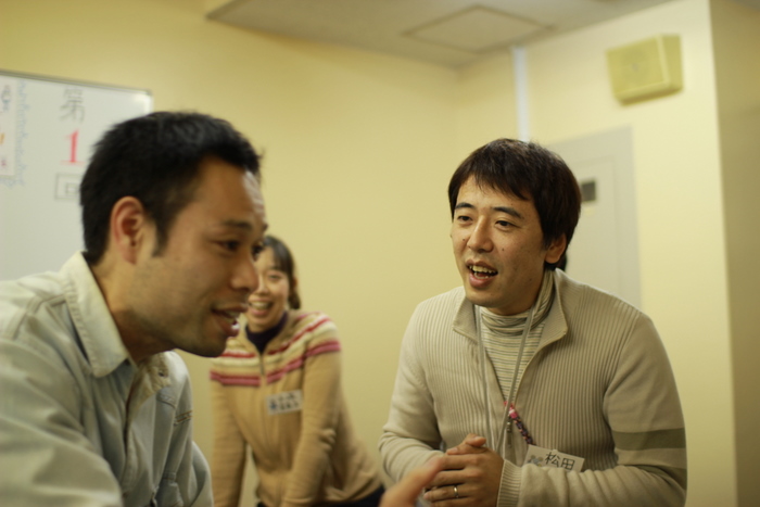 何かしらの「達人」を即興で演じる田丸の受け答えをする松田。