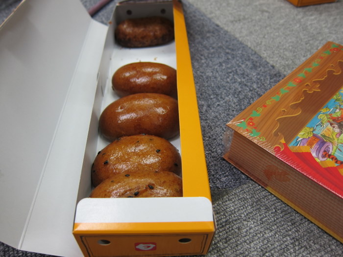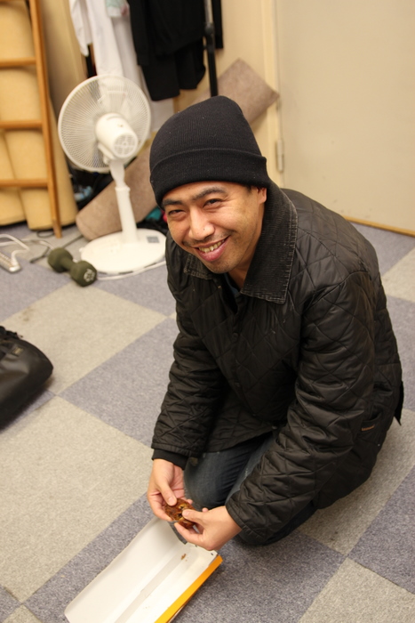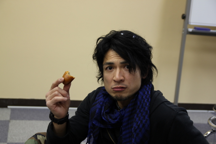 平川真司が茶色いまんじゅうを食っていた。