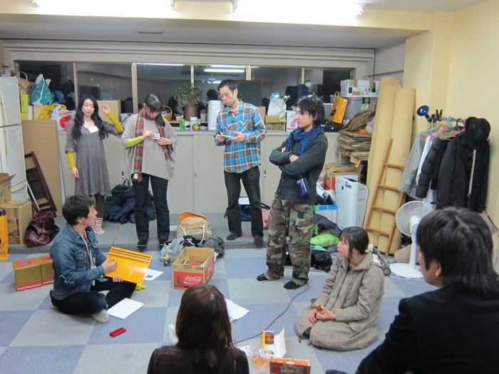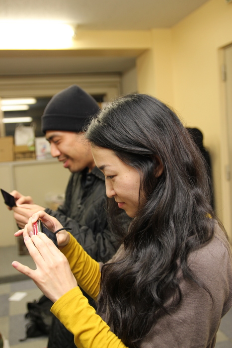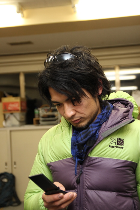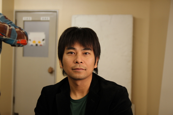 携帯をいじっている演出・森角。