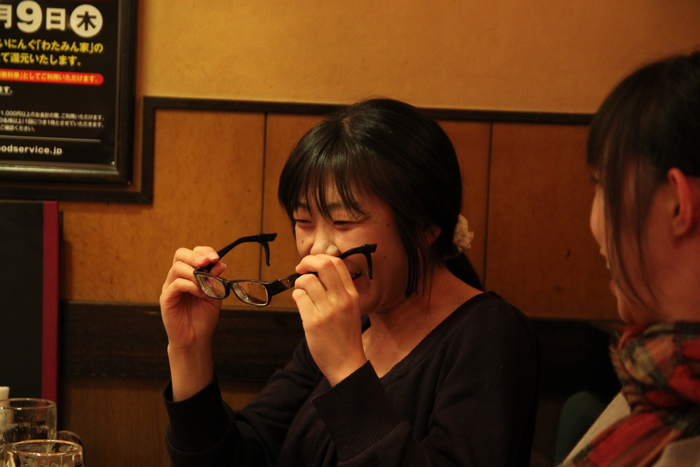 瀬戸の強烈に度が強いメガネをかけようとする田口さん。