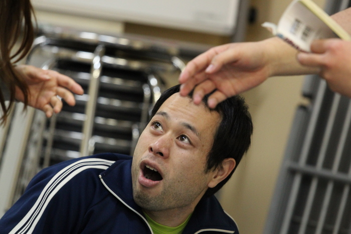 稽古中の田丸。
