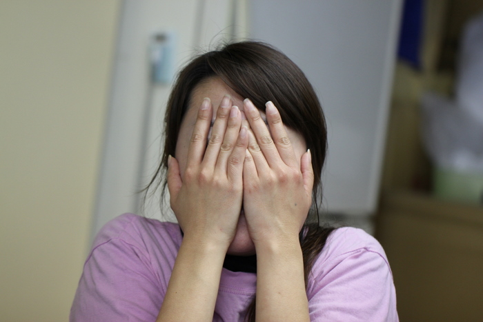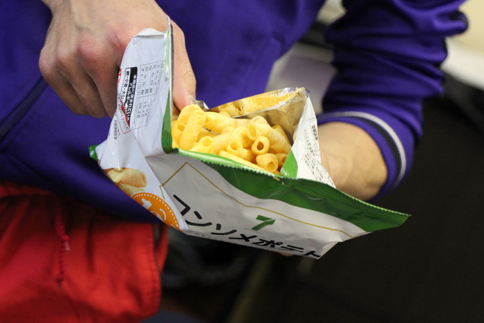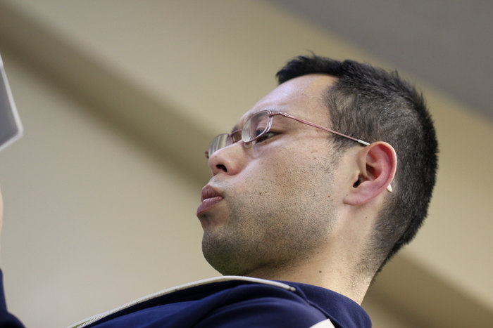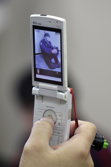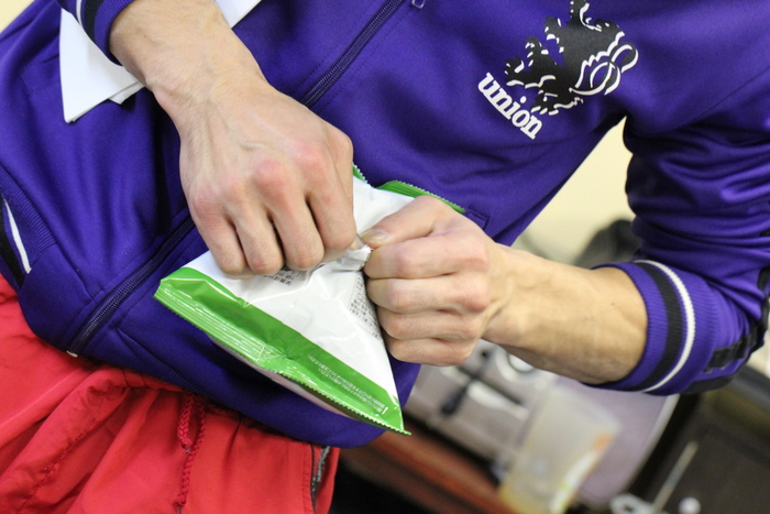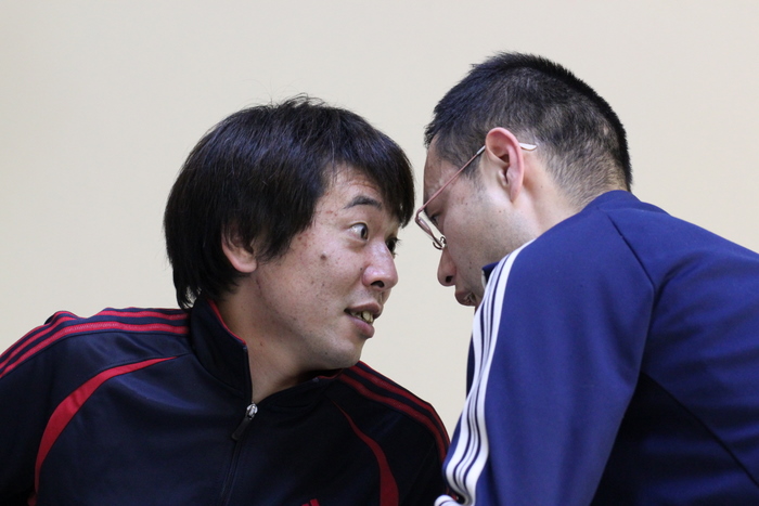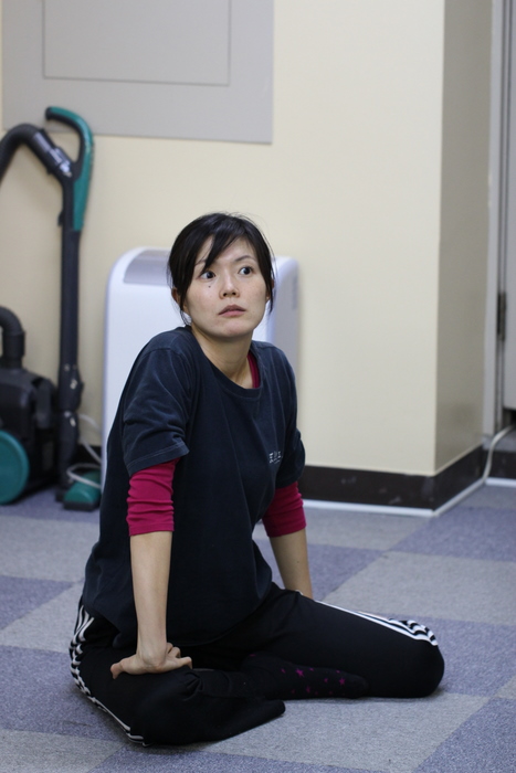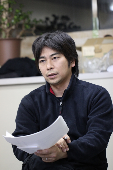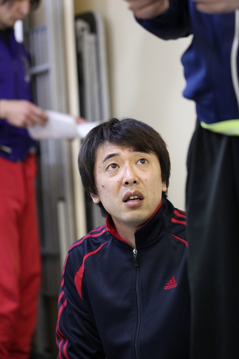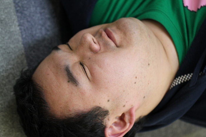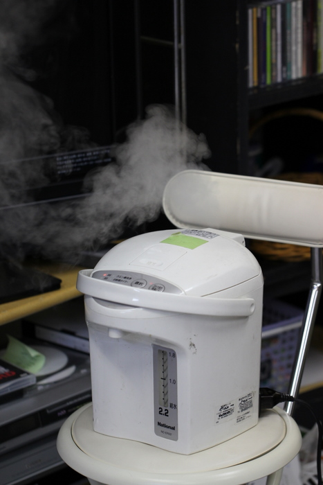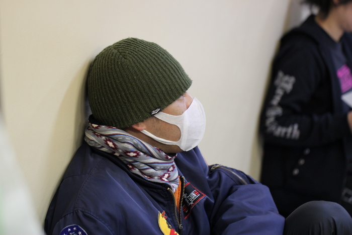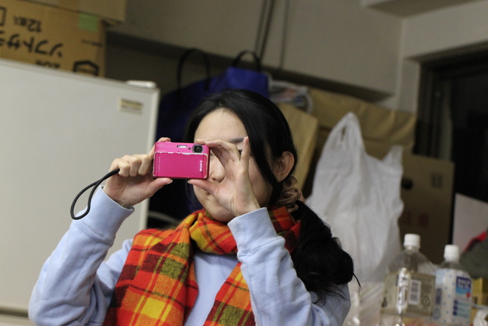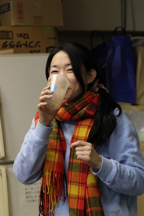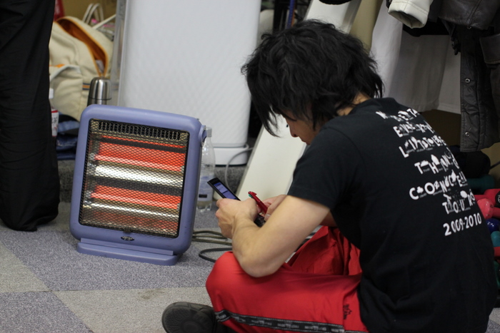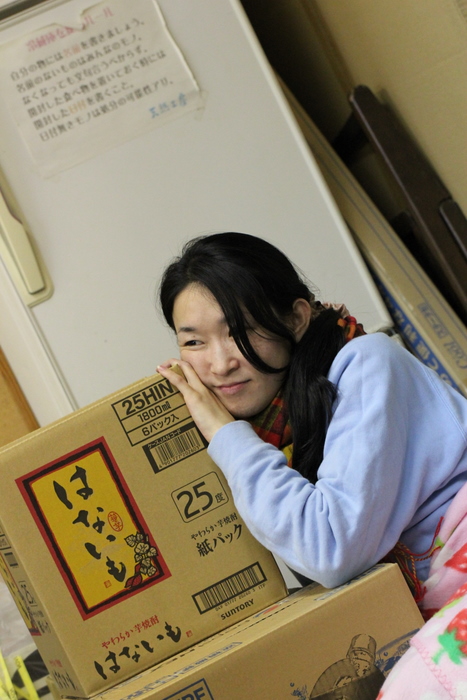 病み上がりの中谷は、ダンボールに埋もれて見学。
