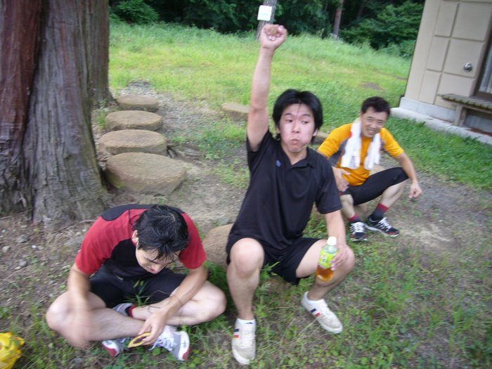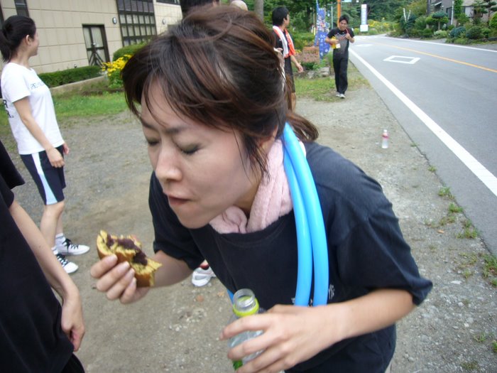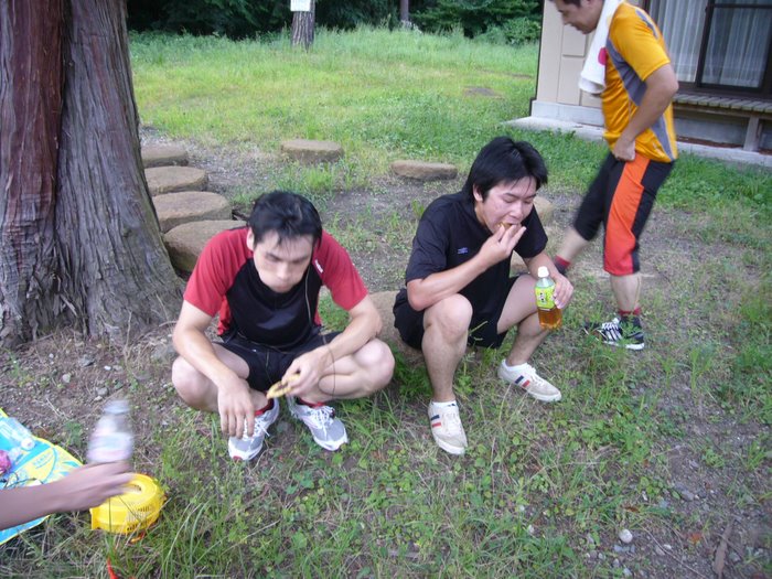 走り終わってパサパサの口の中にどら焼きをねじ込む面々。