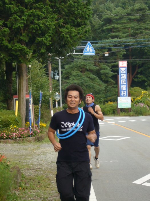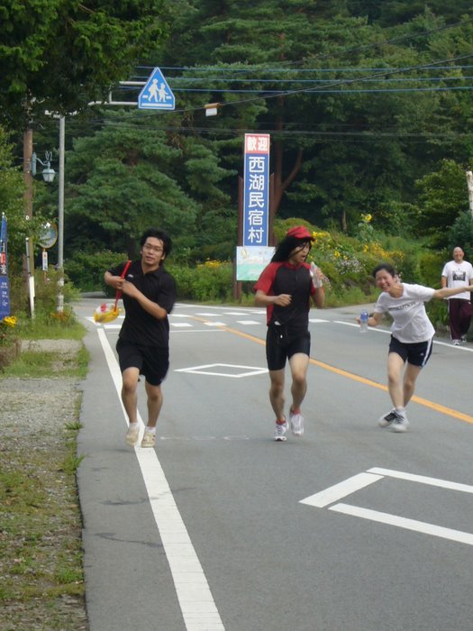 4チーム対抗で、西湖畔10キロをタスキリレーします。
